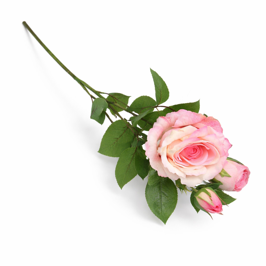 66 cm-es 3 Bimbós Rózsaszín Selyem Rózsa – Élethű Műrózsa Ág Dekorációhoz