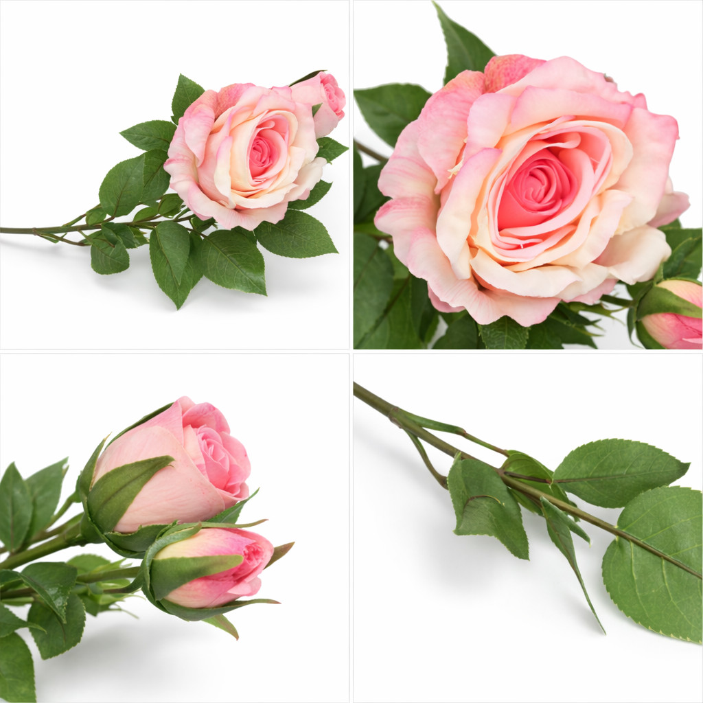 • 3 bimbós kialakítás: Egy nyíló rózsa és két bimbó természetes, életszerű megjelenéssel.