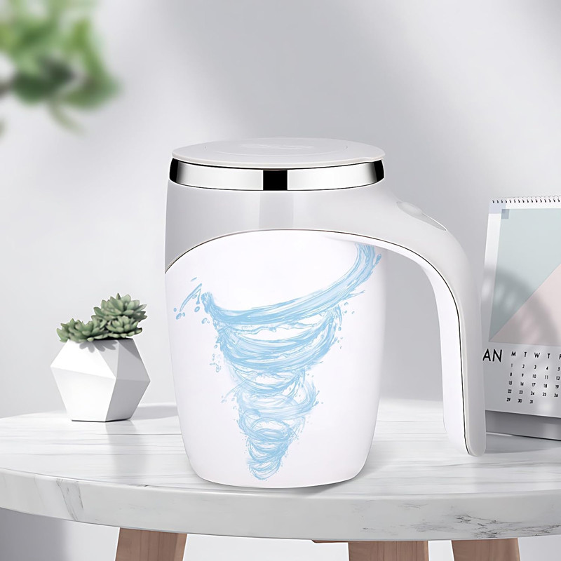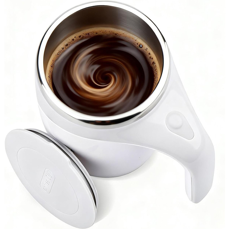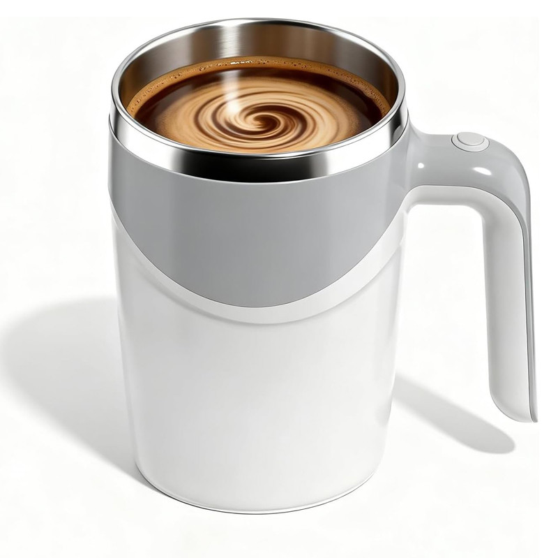 Automatikus Önkavaró Bögre 300 ml – Mágneses Keverő Pohár, Fehér–Szürke, Kávéhoz és Teához