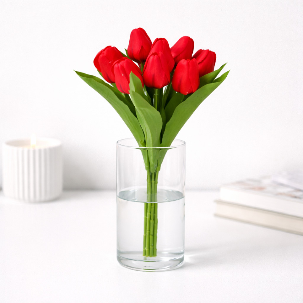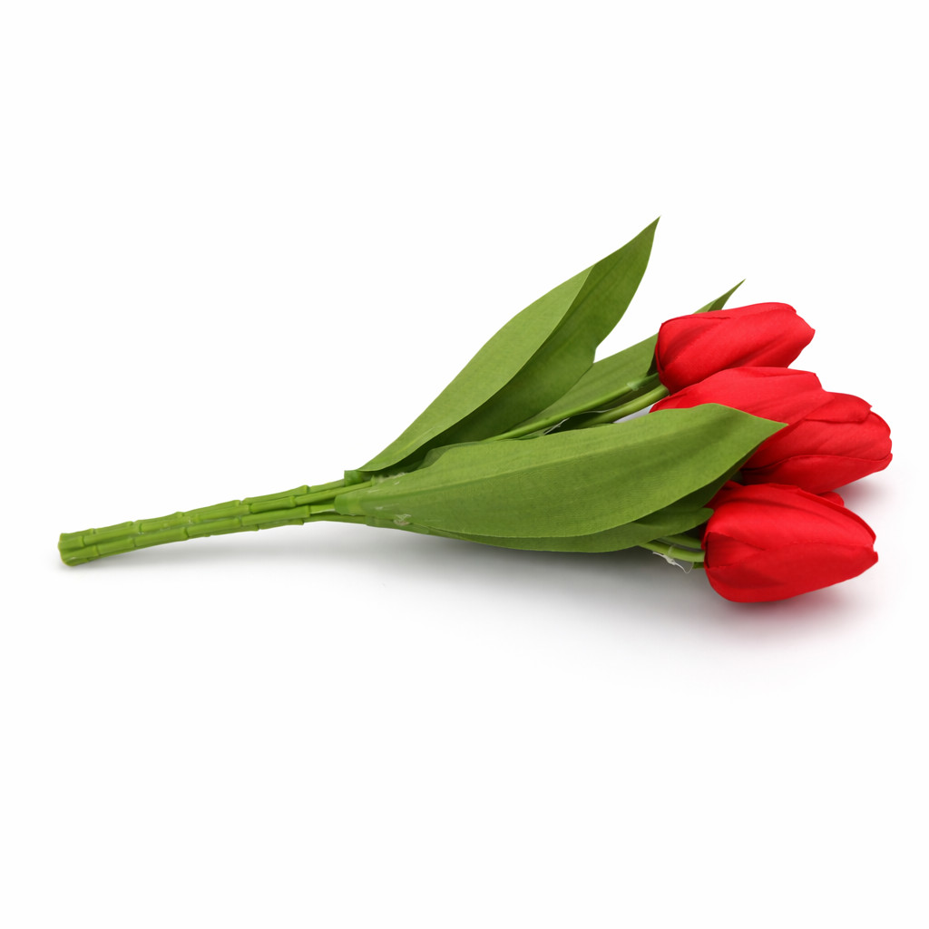 Prémium mesterséges tulipán virágcsokor 35 cm – 9 szálas piros tulipán dekorációs művirág csokor