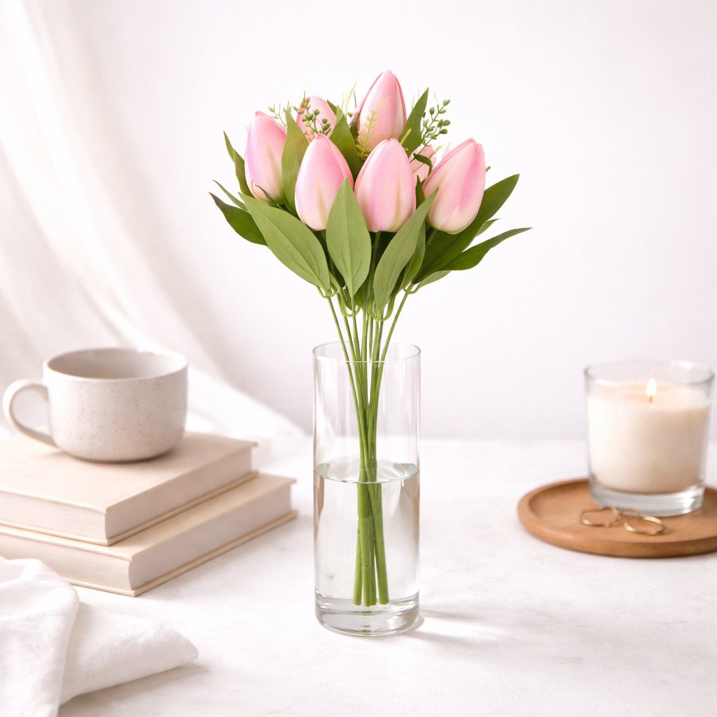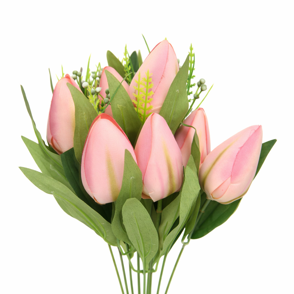 Prémium mesterséges tulipán virágcsokor 45 cm – 10 szálas rózsaszín tulipán dekorációs művirág csokor