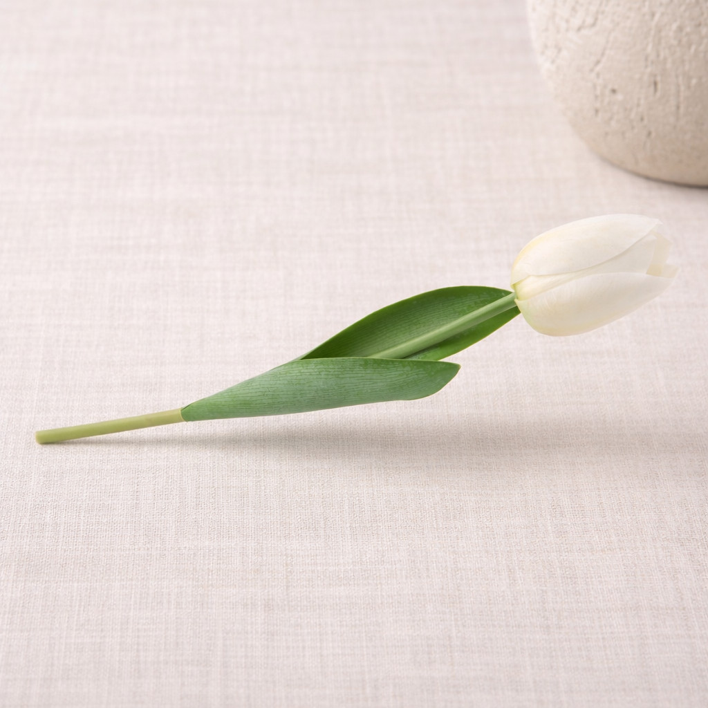Prémium 56 cm-es fehér műtulipán – vastag, stabil szilikon gumi dekor virág otthonra és rendezvényre