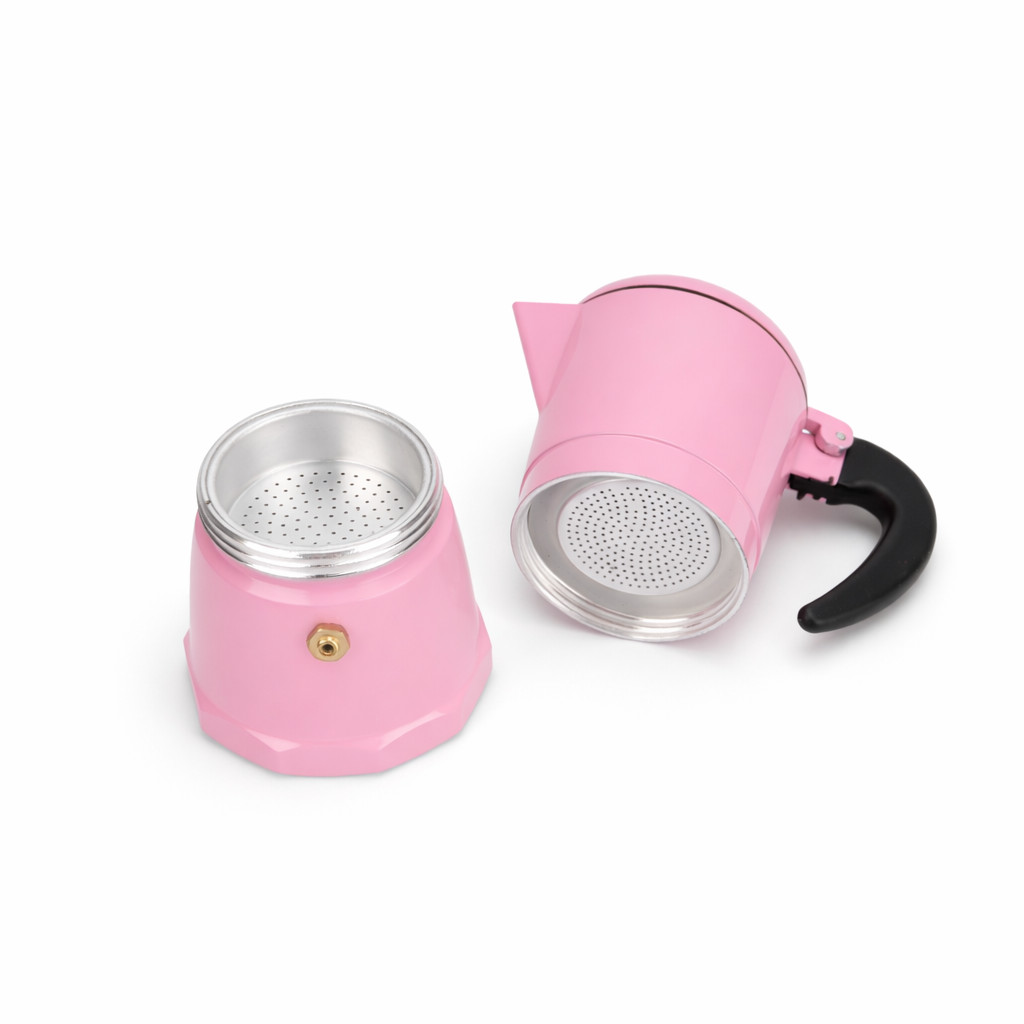 Kotyogós kávéfőző 2 személyes – rózsaszín, klasszikus olasz eszpresszó kávéfőző