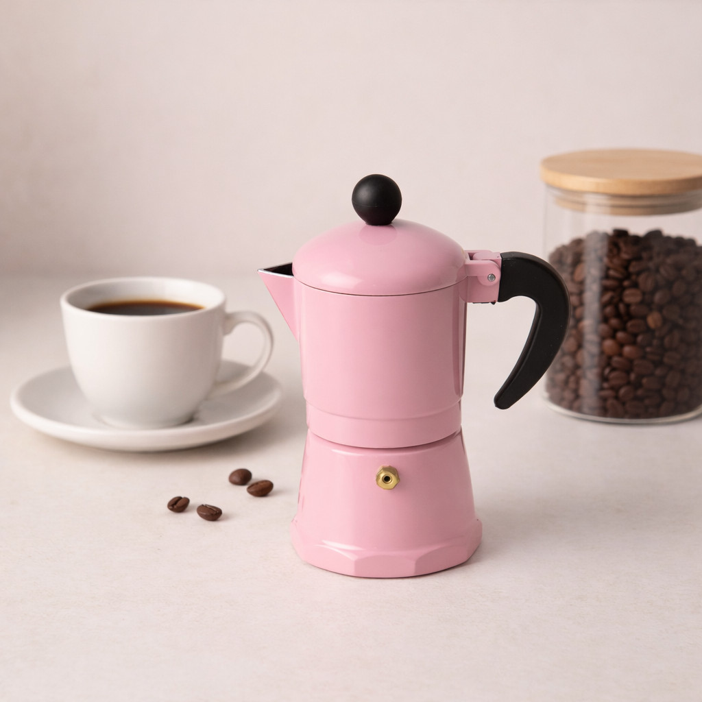 Ez a rózsaszín kotyogós kávéfőző 2 személyes kivitelben tökéletes választás azoknak, akik a klasszikus eszpresszó ízt modern megjelenéssel szeretnék ötvözni.
