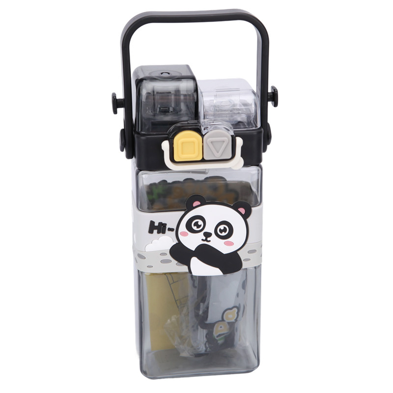 Ez a bájos, fekete pandás kulacs kifejezetten gyerekeknek készült. A 0,75 literes űrtartalom elegendő folyadékot biztosít a nap folyamán, miközben a szilikon szívószál megkönnyíti a kényelmes és biztonságos ivást. A téglalap alakú forma praktikus – könnyedén elfér táskában, és stabilan áll az asztalon is. A biztonsági zár megakadályozza a szivárgást, így ideális iskolába, utazáshoz vagy sportoláshoz.