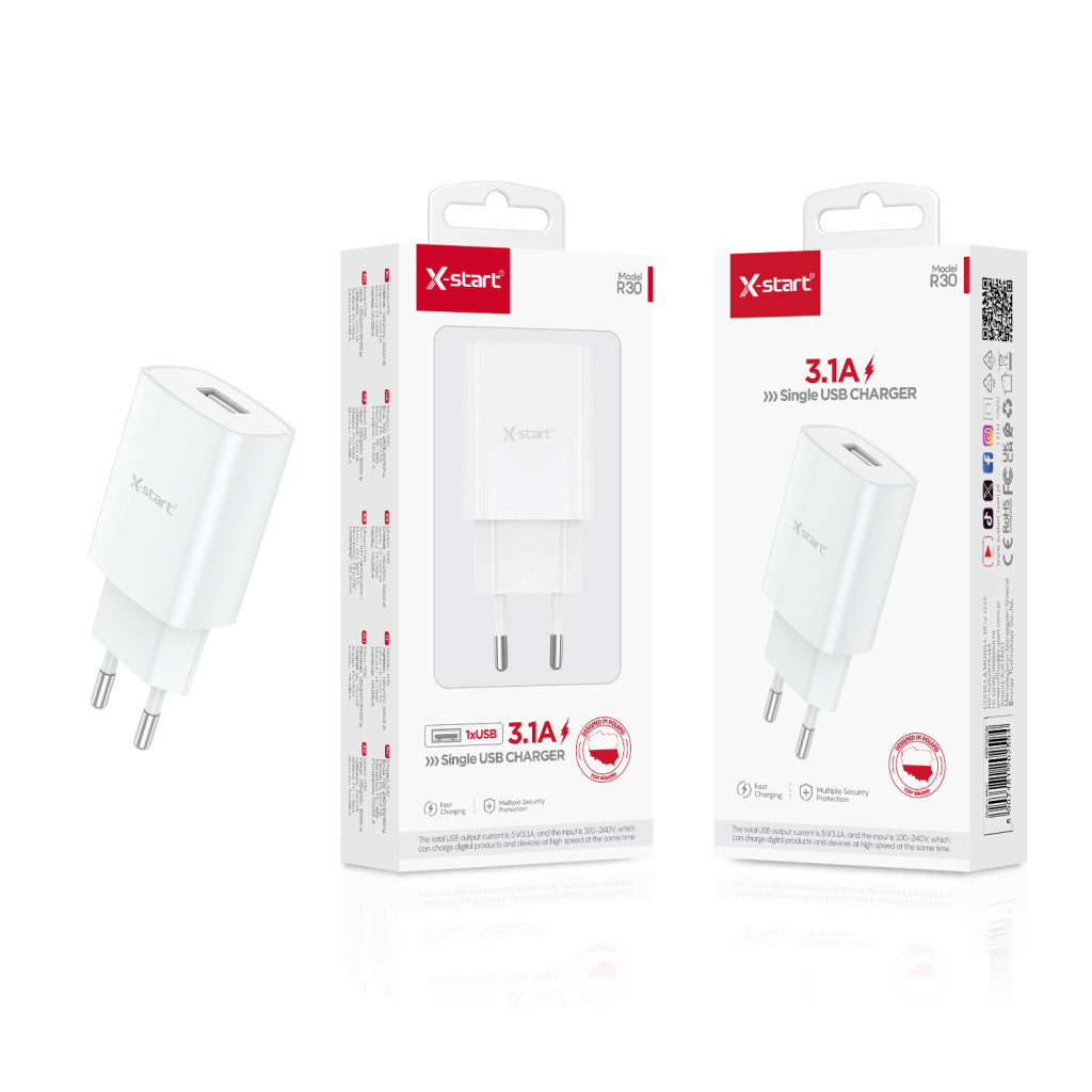 X-start 3.1A USB fali töltőadapter – egyportos, fehér