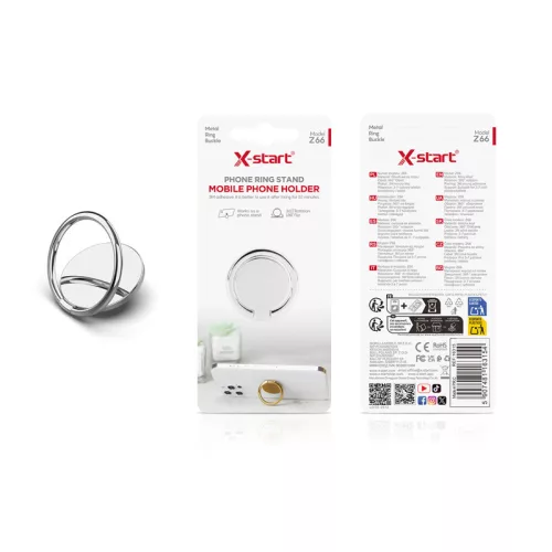 Az X-start ezüst telefon gyűrűtartó elegáns és praktikus kiegészítő a mindennapi mobilhasználathoz. Stabilabb fogást biztosít, így kényelmesebb a telefon használata üzenetírás, böngészés, fotózás vagy videózás közben.