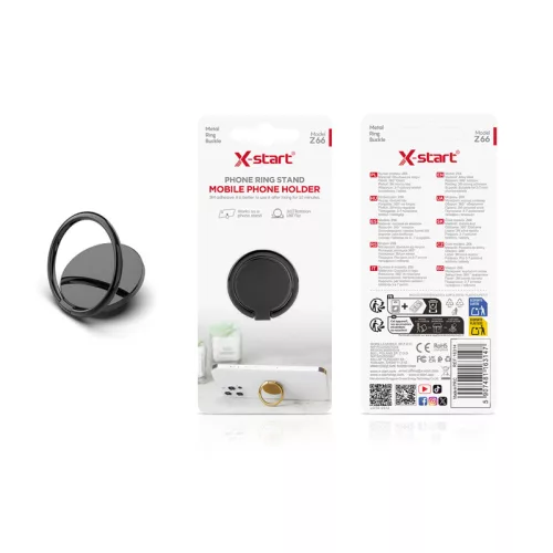 Az X-start Z66 fekete telefon gyűrűtartó egyszerű, mégis hasznos mobiltelefon-kiegészítő. A telefon hátoldalára rögzíthető, kényelmes fogást biztosít, és segít stabilabban tartani a készüléket a mindennapi használat során.