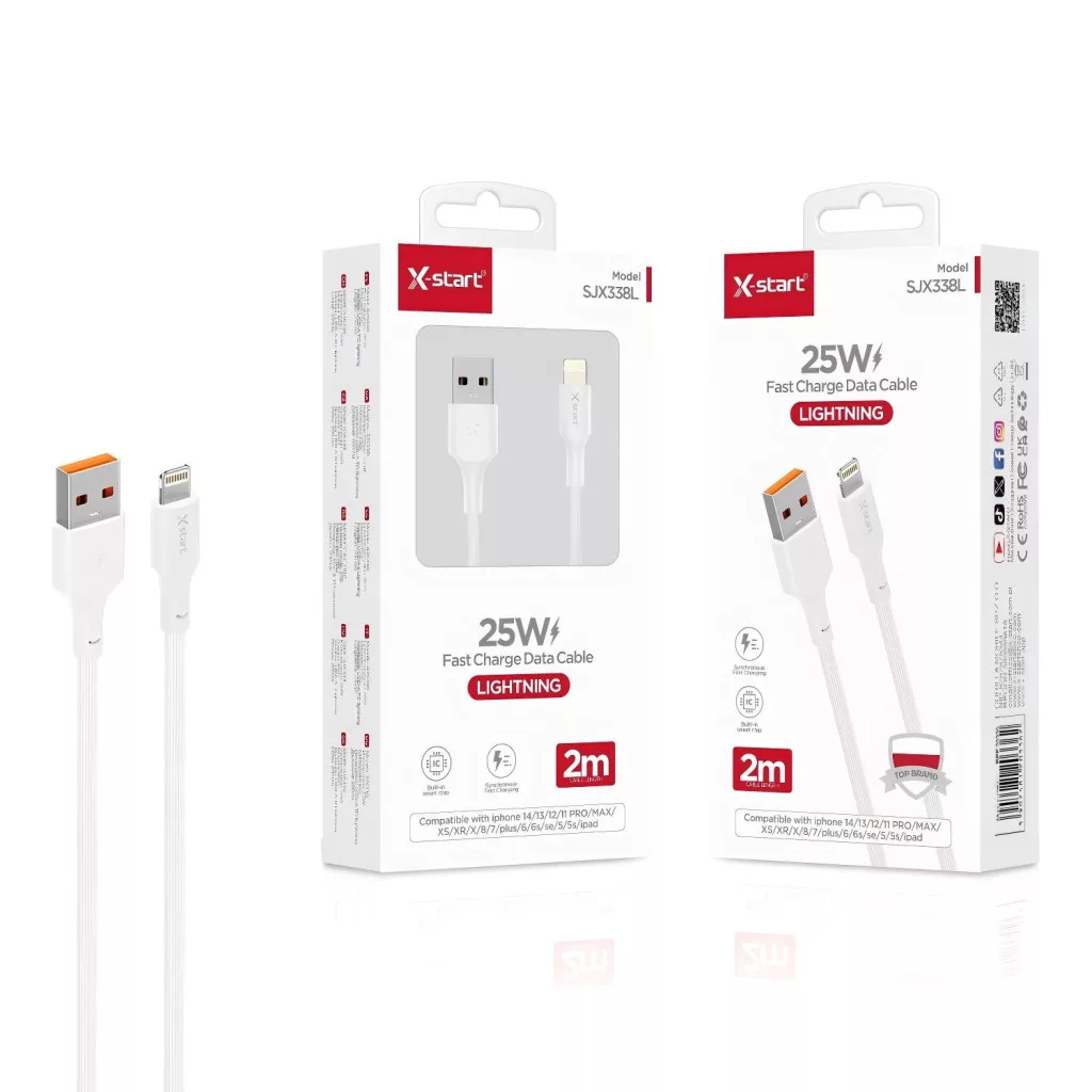 X-start Lightning adatkábel 2 m – 25W szupergyors töltés iPhone készülékekhez