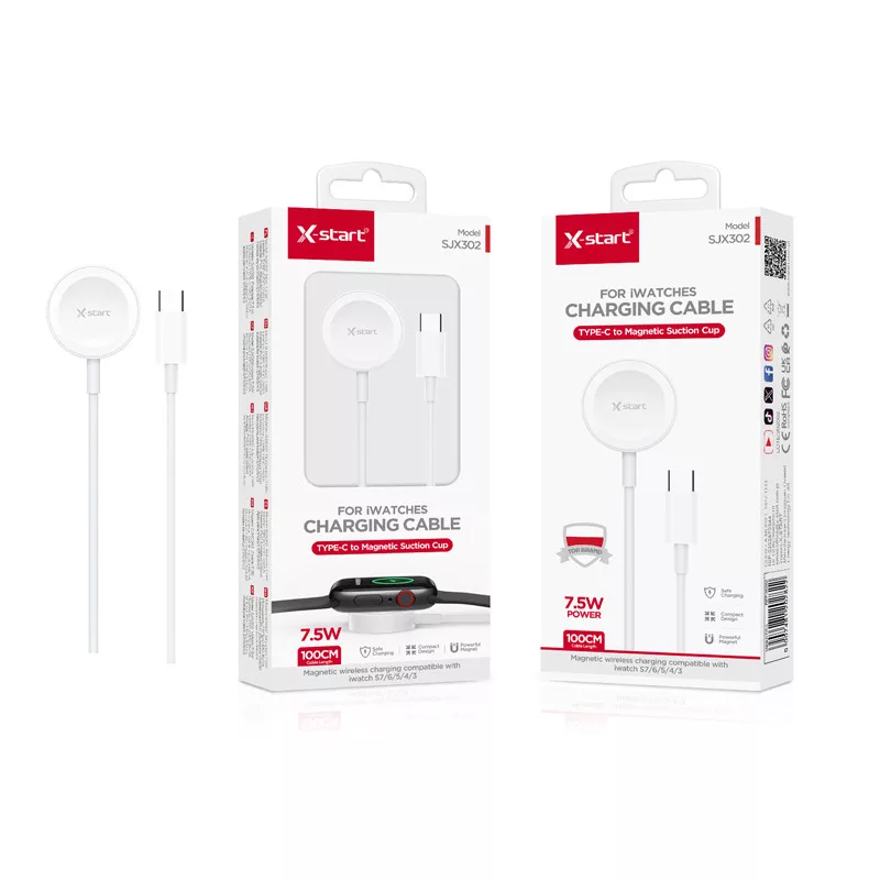 Az X-Start mágneses okosóra töltőkábel praktikus és megbízható megoldás iWatch készülékek töltésére. A mágneses csatlakozás biztosítja a pontos illeszkedést, míg a 7.5W teljesítmény gyors és stabil töltést garantál. Az USB-C csatlakozó révén könnyedén használható power bankkal, laptopokkal vagy hálózati adapterrel is. Kompakt kialakításának köszönhetően ideális választás otthonra és utazáshoz egyaránt.