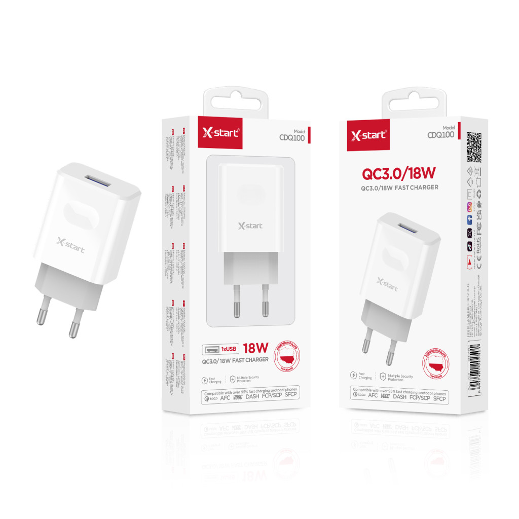 X-start QC3.0 gyorstöltő adapter – 18W, fehér