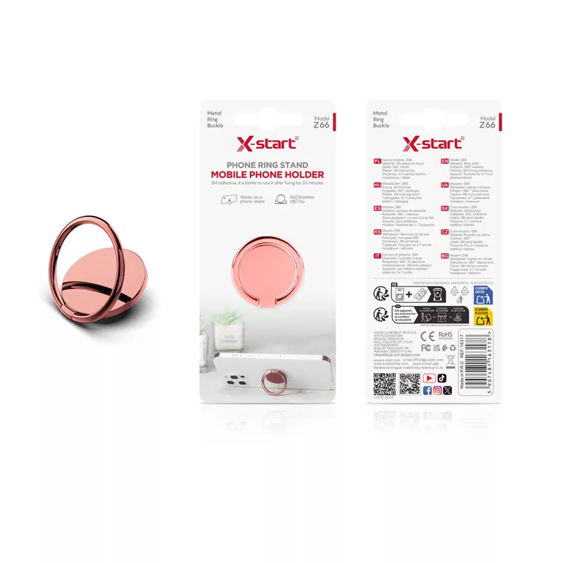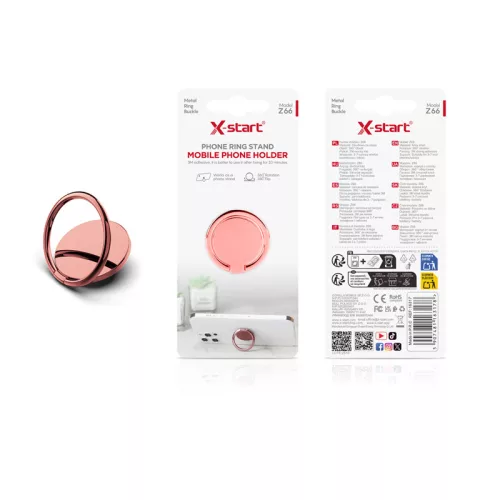 Az X-start Z66 rosegold telefon gyűrűtartó egyszerűen rögzíthető a telefon vagy telefontok hátoldalára. A gyűrűs kialakítás stabilabb fogást ad, miközben praktikus kitámasztóként is használható.